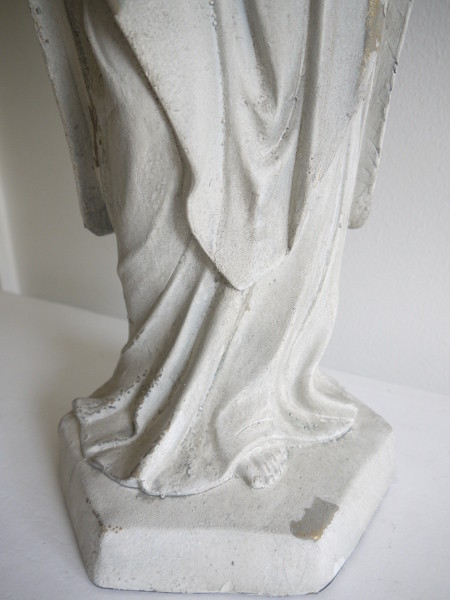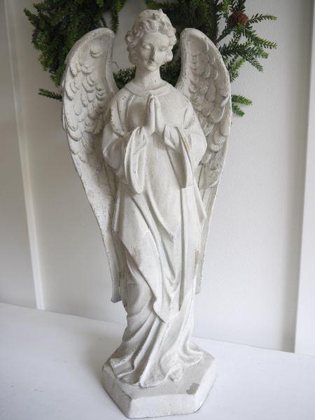 Ängel prydnadsfigur stor. Stor sandfärgad ängel staty med slitna detaljer i färgen för en antik look. Harmonisk och fridfull stor ängel prydnadsfigur med fina detaljer.