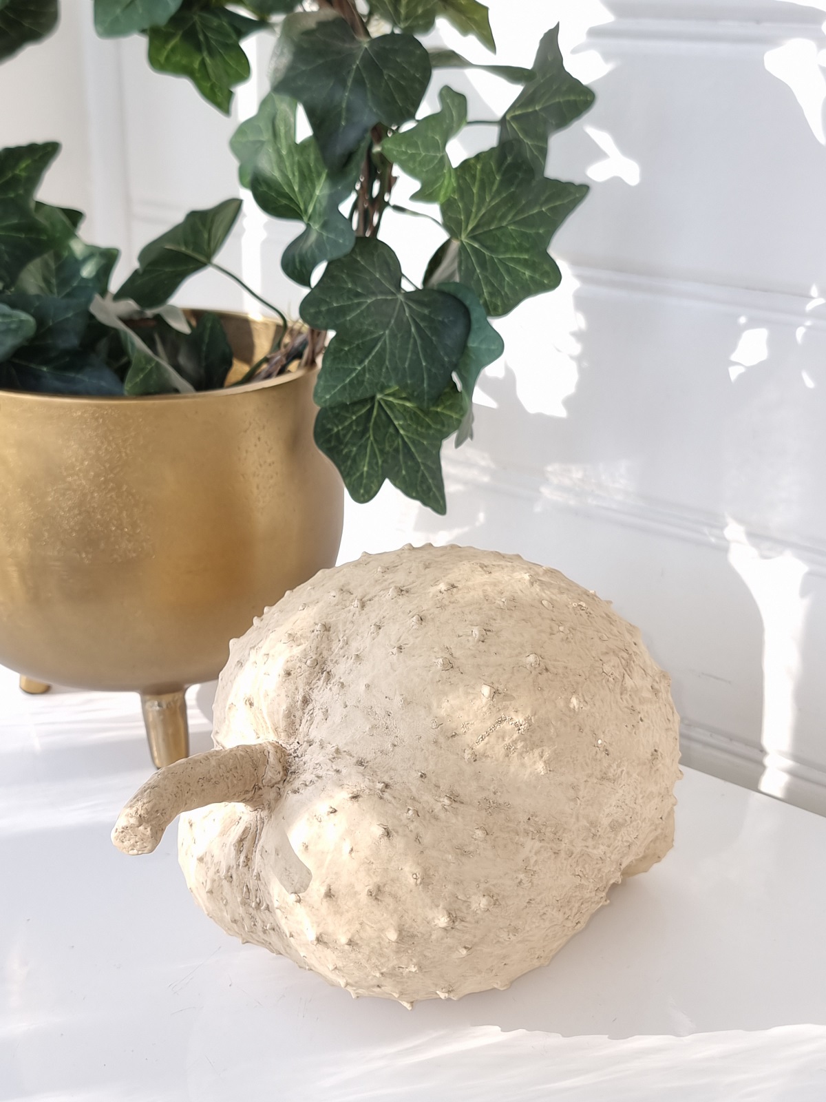 - Polyresin, ligger stadigt, tung, krämfärgad, gul, ljusbrun färg