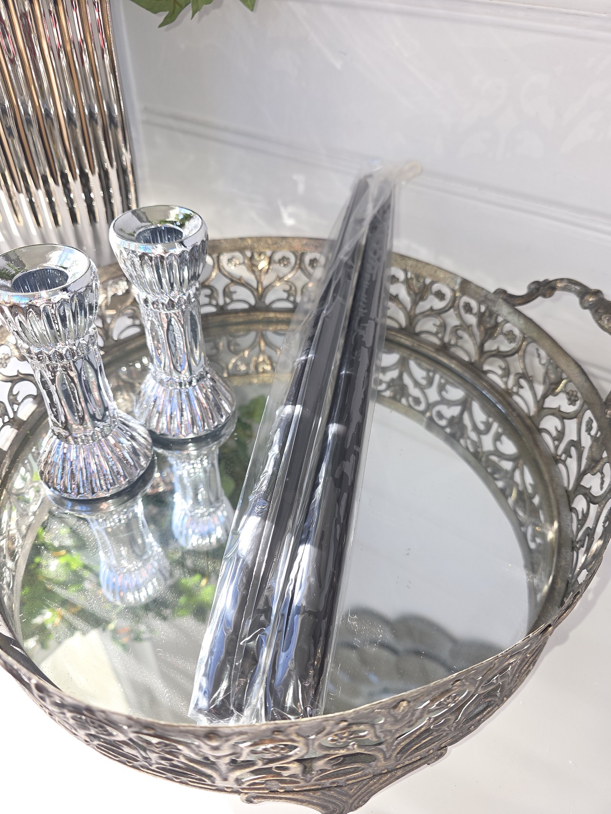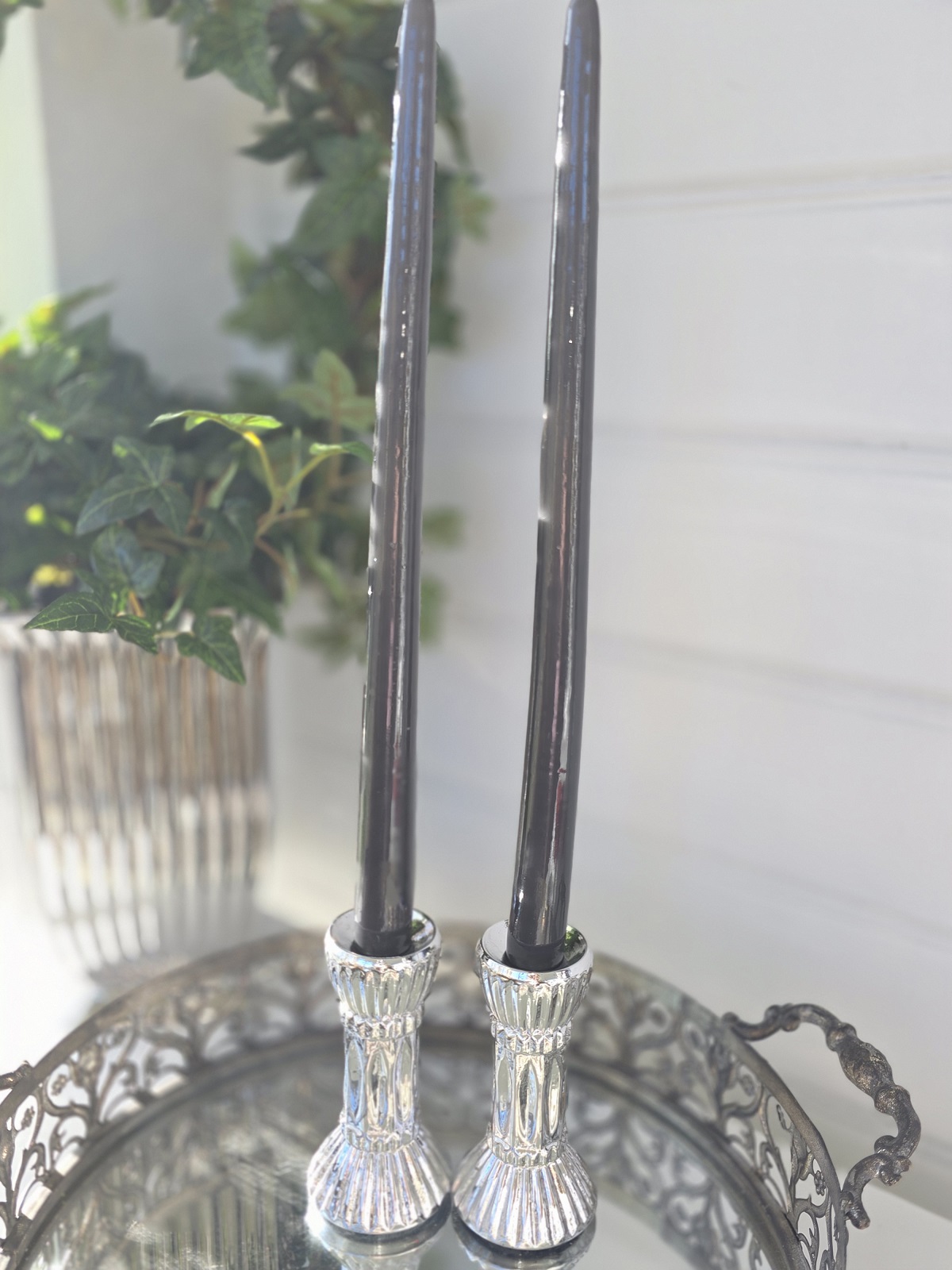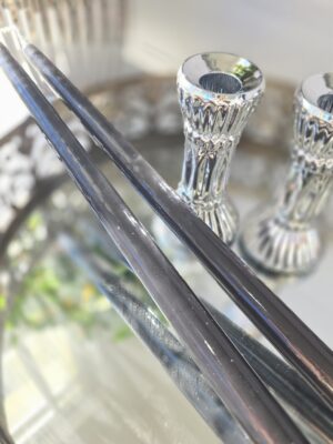 Grå långa ljus med lack