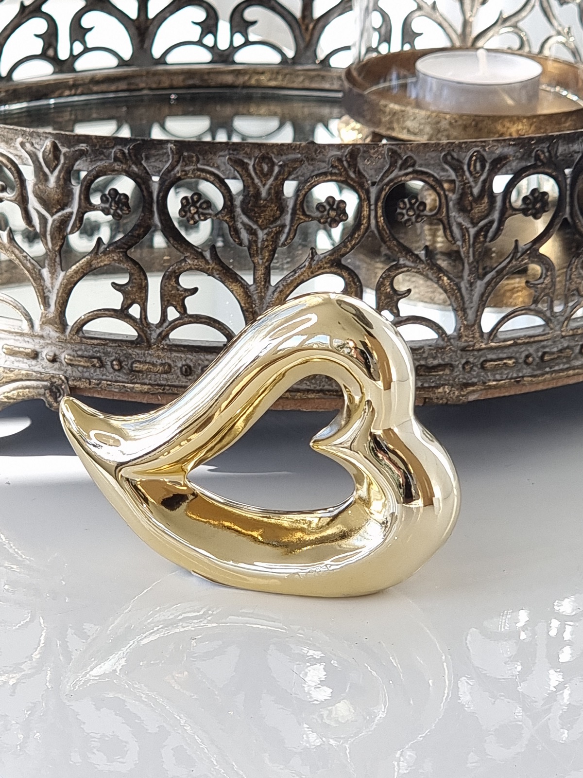 Hjärta i guld dekoration. Stående dekorativt hjärta i guld för inredning och dekoration.