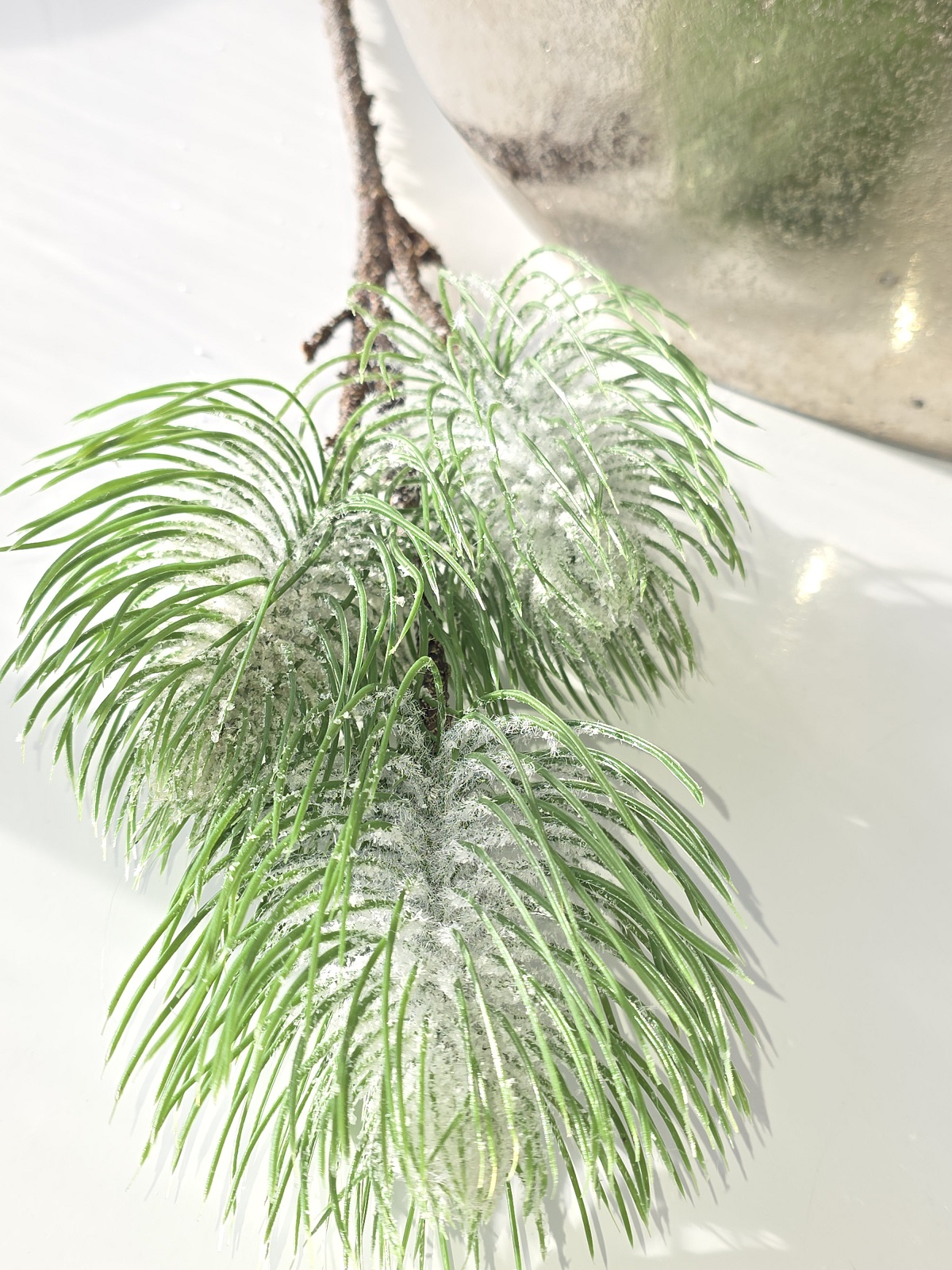 Härlig lite annorlunda och dekorativ grankvist med snö att dekorera med.