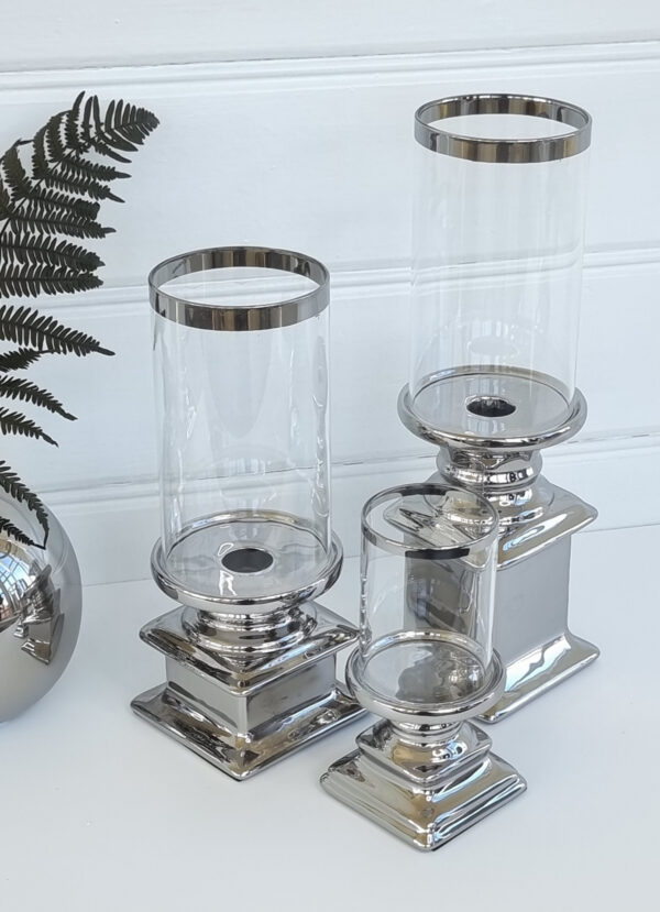Ljuslykta i silver med glascylinder. Letar du efter en stilren ljuslykta i silver? Gärna en ljuslykta i glas och silver? Ljuslykta i silver för inredning och dekoration på bordet men även på en ljusbricka med andra ljusstakar.
