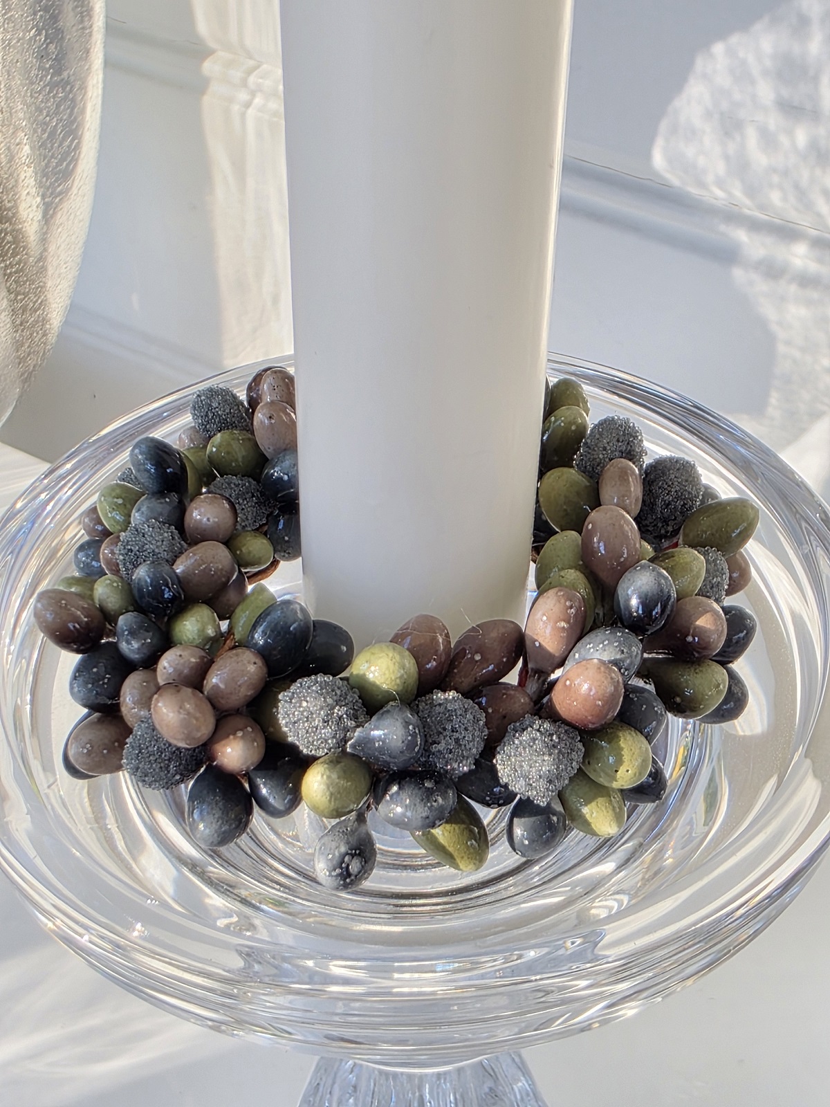 Ljusmanschett blå brun grön till kronljus. Ljusmanschett att sätta på en ljusstake som dekoration. Ser din ljusstake lite tråkig ut? Varför då inte dekorera med en ljusmanschett? En ljusmanschett mjuknar upp övergången från ljus till ljusstake och det ser trevligt ut.