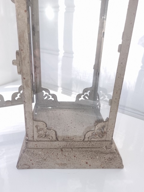 Lykta i metall med krona som dekoration
