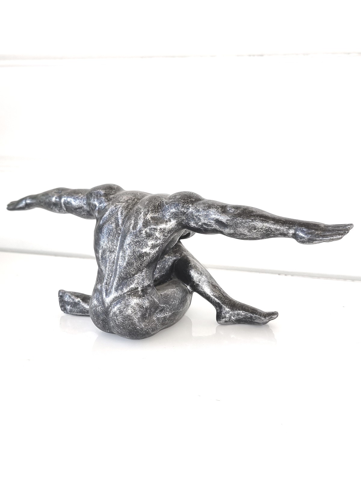 Man skulptur med högt dekorationsvärde som är fin från alla hål. Färgen på man skulptur är grå svart och tillverkad i polystone.
