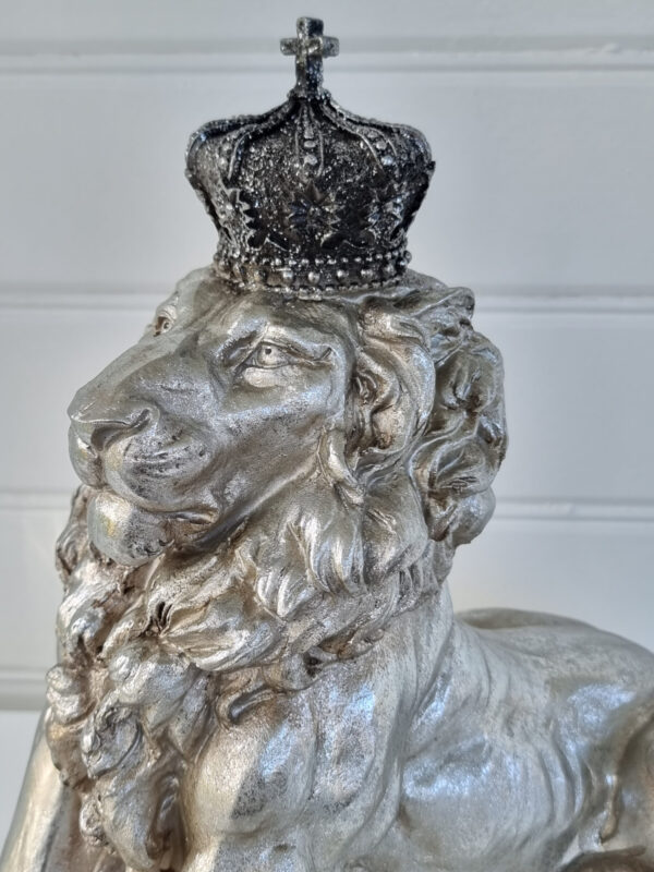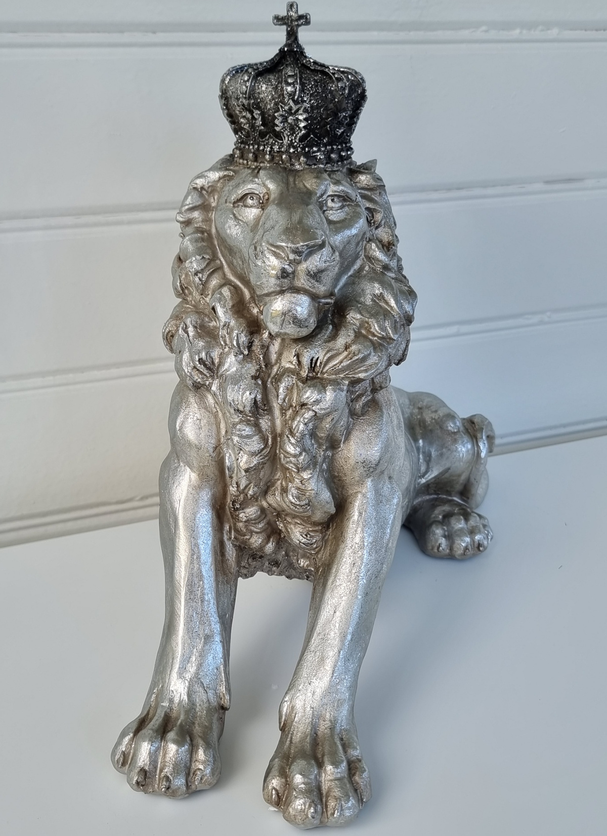 Prydnadssak lejon i silver med krona. Gillar du att ha lite annorlunda inredningsdetaljer som inte alla andra har? Kanske ett dekorationsdjur i silver? Då kan vi rekommendera prydnadssak lejon i silver med krona. Unikt och dekorativt lejon i silver med en krona som blickfång i inredningen! Även dekoration i silver kan du hitta hos oss.