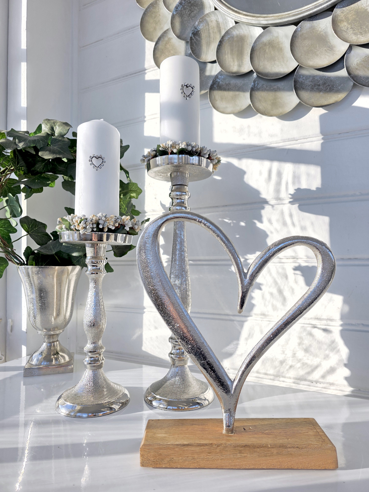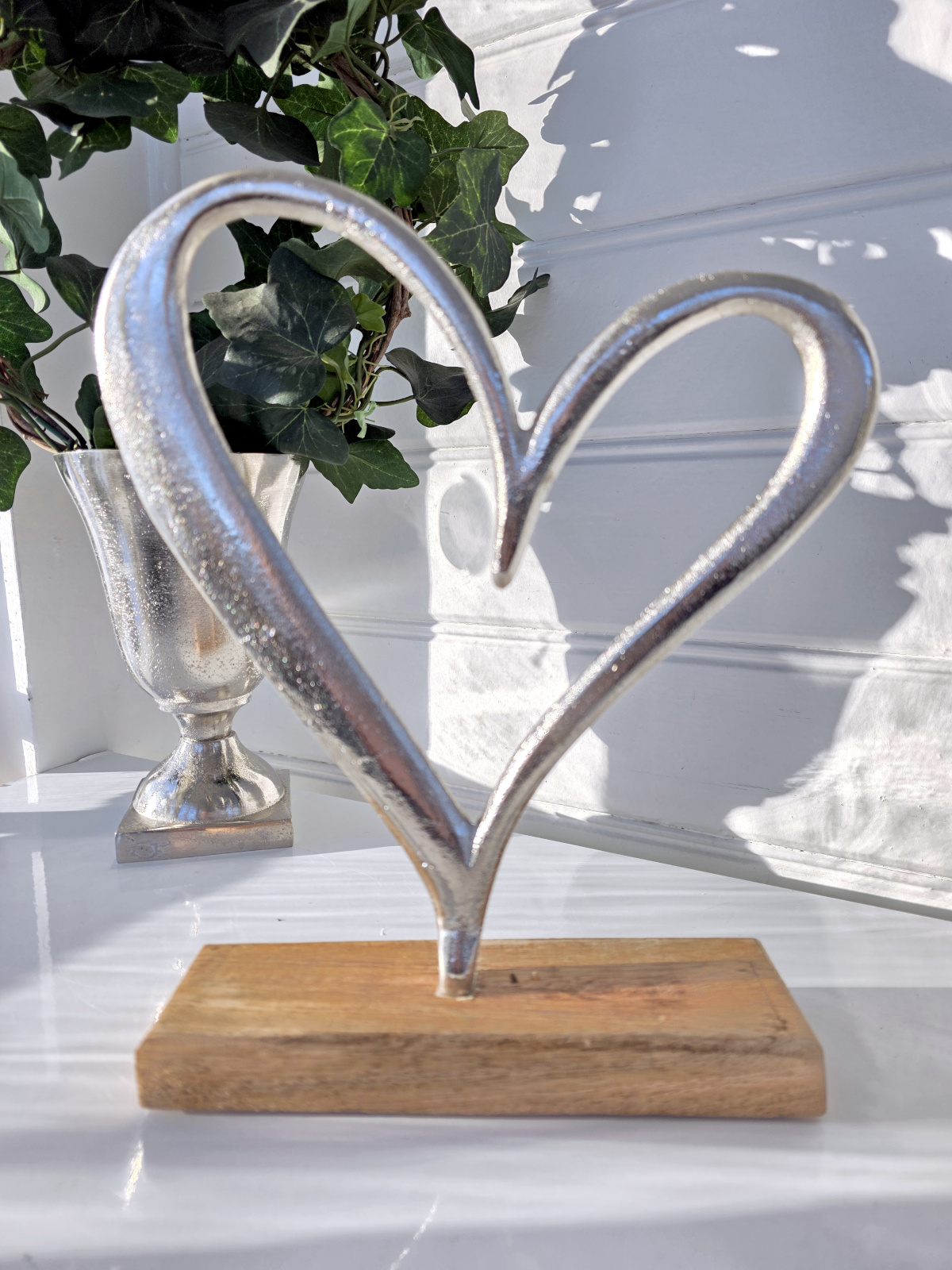 Stående hjärta i silver för dekoration